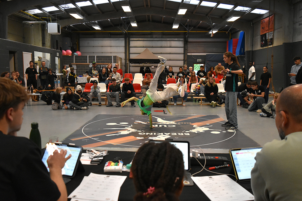 Jugement : 50% Technique (Top Rock, Footrock, Freeze, Power Move) et 50% artistique (Musiqualité et Originalité & Performance)
